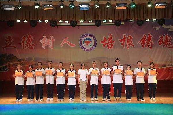 德育处副主任李华同志为优秀学生代表颁奖