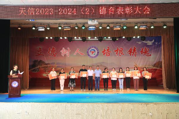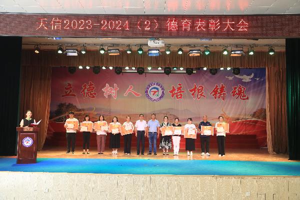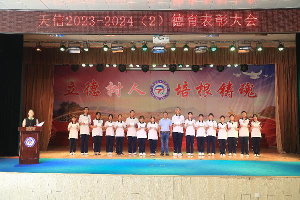 大会表彰了在本学期德育活动中表现优异的学生近1800人次、先进集体59个和优秀班主任59人。愿天信学子对标榜样精神、汲取榜样力量,在新征程上再创新的佳绩!