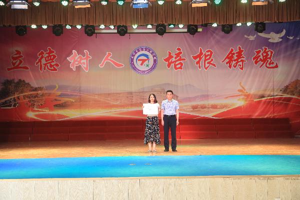 副校长李占军同志、德育处主任裴铁飞同志为优秀班集体、优秀班主任颁奖