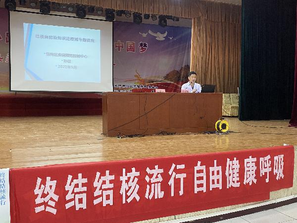 孙征科长从什么是结核病讲起,重点讲解结核病的传播途径、临床表现、怎样预防及学校开展结核病防治工作的重要性等,最后以耳闻目睹的事例和典型病例告知学生们结核病的严重危害性,一旦发病,身体健康将受到损害,学业也将会受到影响。孙征科长介绍,学校是人口密集的场所,相互接触频繁,加上学习负担重、生活不规律、户外活动时间有限等因素影响,容易发生结核病。一旦发生结核病疫情,如果处理不及时,易造成爆发流行。