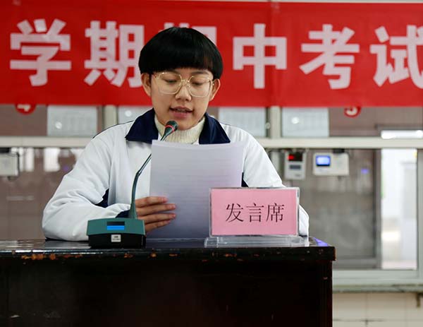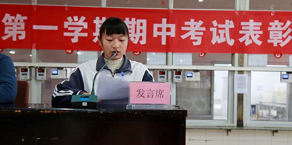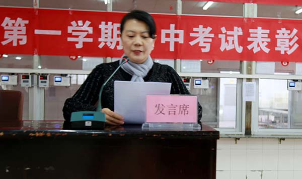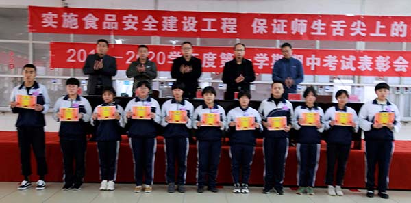 大会在隆重热烈的气氛中拉开序幕。教务主任刘立东同志代表学校宣读表彰决定。颁奖仪式上,校领导为受表彰集体及个人颁发了获奖证书。教师代表张素杰、刘伟作了发言并勉励学生刻苦勤奋,努力学习。优秀学生代表王鑫衡、王芯两位同学表了决心,发出了倡议,号召全校同学文明守纪,勤奋学习,用实际行动创佳绩、做榜样,为学校增光彩。