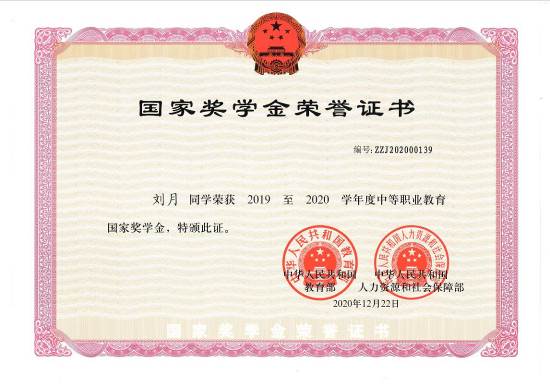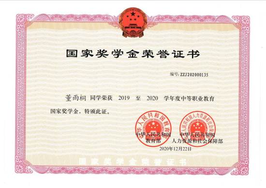 天津市信息工程学校董雨桐、耿旭富、李宏源、李伟俊、刘月五位同学因为在校期间成绩优异、专业突出、素质过硬、全面发展,在2020年国家奖学金评选中脱颖而出,成为全国第二届中职国家奖学金获得者,又一次为全体同学做出了榜样!