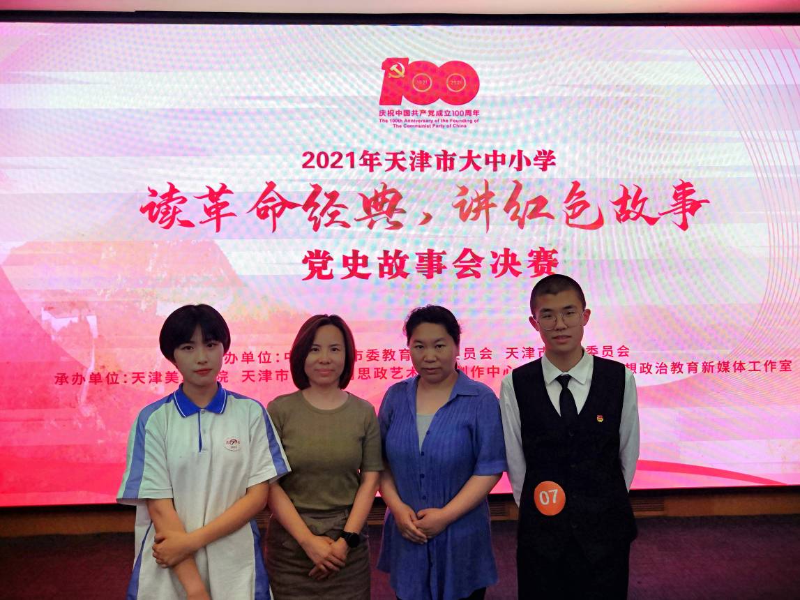 6月16日,天津市委教育工委、市教委组织的2021年“读革命经典,讲红色故事”党史故事会市级总决赛在天津市美术学院举行。天津市信息工程学校学生党鑫鹏、仇欣欣两位同学由于前期初赛、复赛的出色表现顺利闯入中职组市级总决赛,并以他们的精彩的故事和富有感染力、吸引力的讲述在总决赛的赛场上征服了全体评委老师,最终荣获市级一等奖,李晓翠、杨宁两位教师荣获市级优秀指导教师奖。
