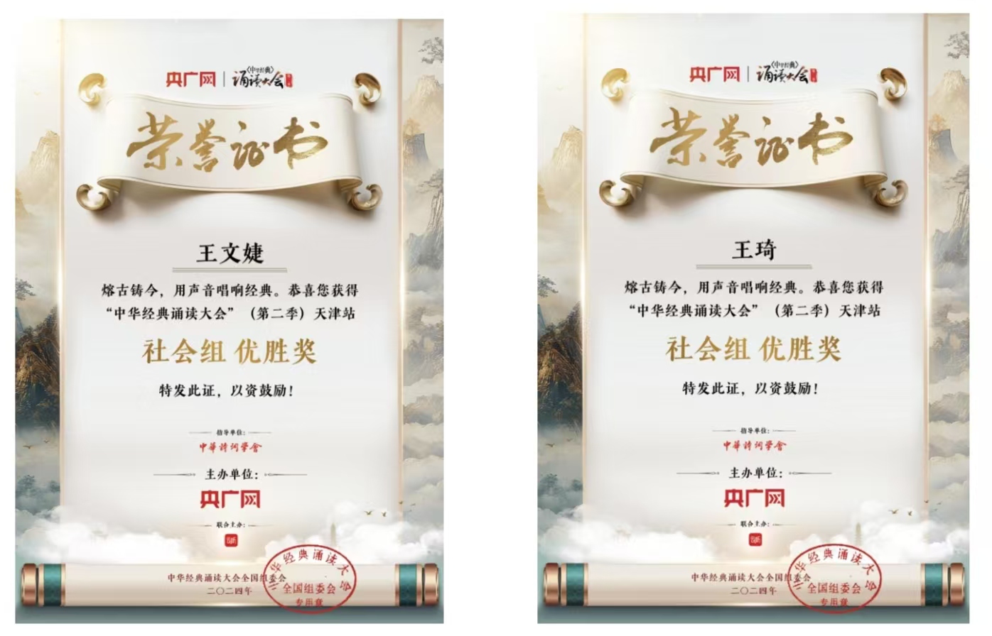 12月1日,中华经典诵读大会(第二季)天津站总展演暨颁奖典礼在天津海河剧院圆满落下帷幕。天津站获奖名单揭晓,共有167位选手脱颖而出,获得6个组别的一、二、三等奖及优胜奖。我校青年教师王文婕、王琦荣获社会组优胜奖。