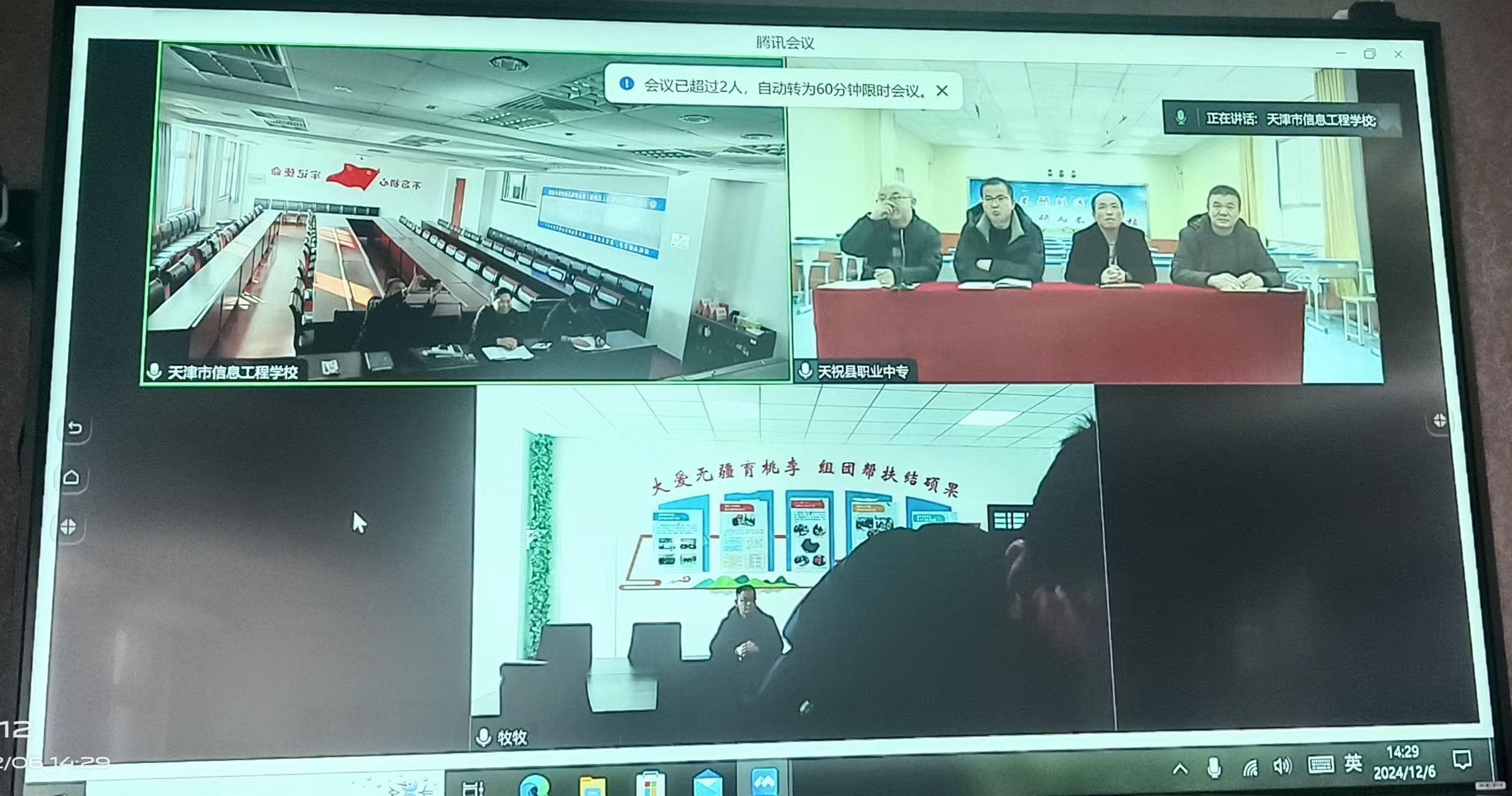 为持续推进蓟州区职业教育与甘肃省天祝藏族自治县、古浪县的东西部协作教育帮扶工作,深化交流、共谋发展,2024年12月6日下午,天津市信息工程学校、天祝县职业中等专业学校、古浪县职业中等专业学校教学主管部门领导举行线上交流座谈会。